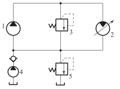 1—定量泵;2—变量马达;3—安全阀;4—补油泵;5—溢流阀