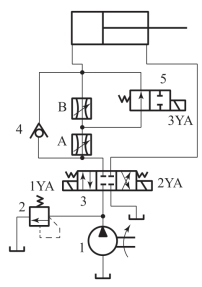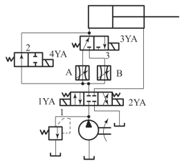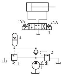 1—溢流阀;2—顺序阀;3—换向阀;4—蓄能器