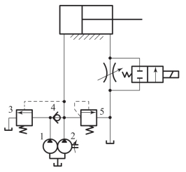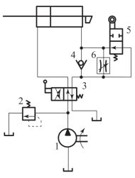 1—液压泵;2—换向阀;3—二位二通手控;4—单向阀;5—行程阀;6—调速阀