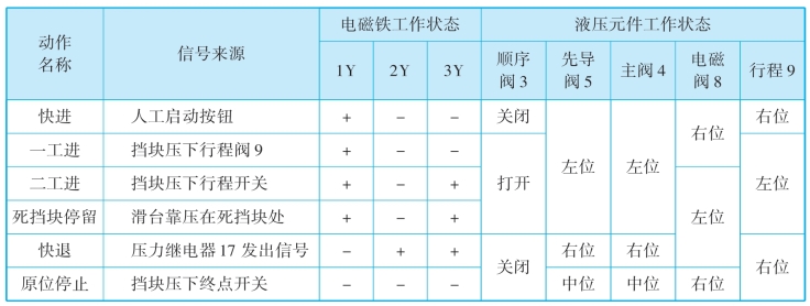 当滑台退回到原位时,行程挡块压下行程开关,发出信号,使电磁铁2Y断电,换向阀4处于中位。