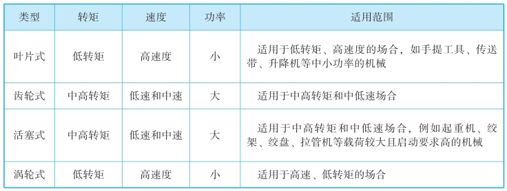 表7-6 常用气动马达的特点和适用范围