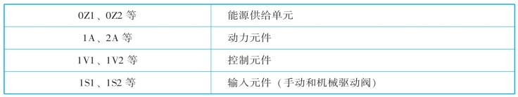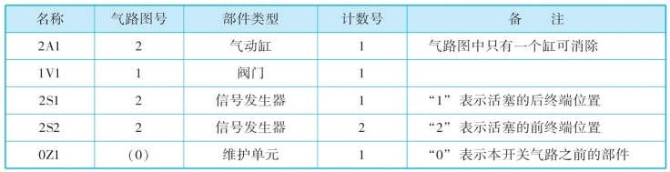 在这类标示法中,元件被分成若干组。0组中包含能源供给元件,1、2、…组中包含独立的控制链,通常每个气缸分配一个编码,如表8-3所示。