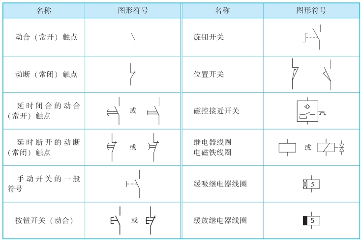 电气-气动控制回路中常用的电气图形符号如表9-1所示。