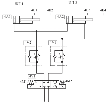 (3)采用纯气路控制设计该推料机构回路。