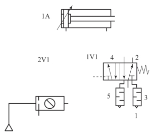 (1)分析气动元件符号,并完成以下填空: