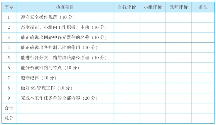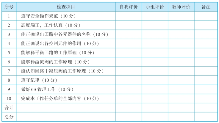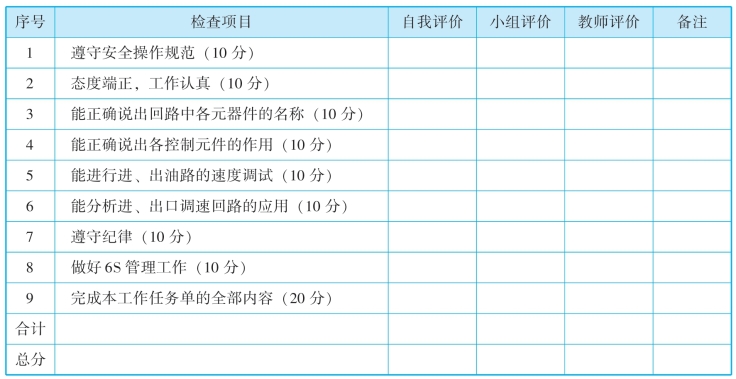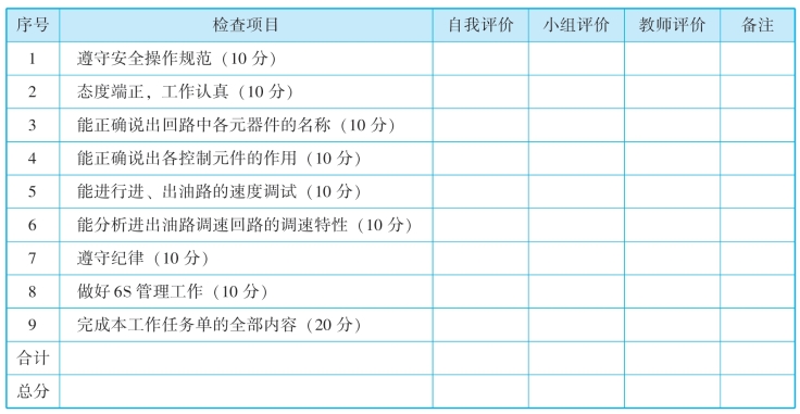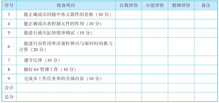 (3)小组讨论,列出平面磨床工作台液压回路分析中所用的器材名称、符号和数量。