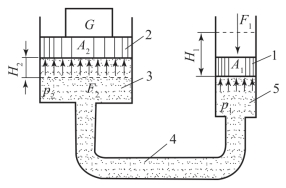 1—小活塞;2—大活塞;3,4,5—管路