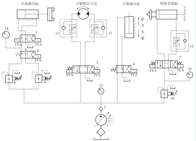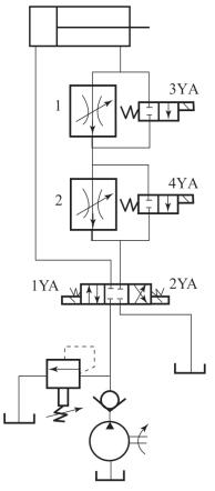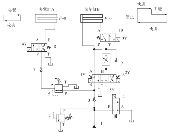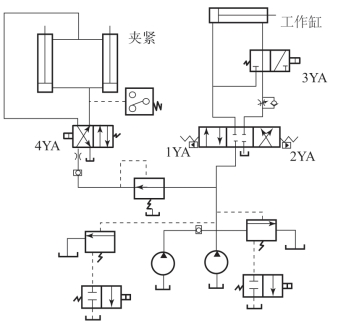 (4)分析小齿轮加工生产线的液压原理图,分析并回答以下问题: