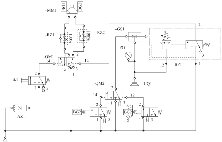 气路图清楚地说明了控制逻辑。气路图描述了下列的逻辑顺序: