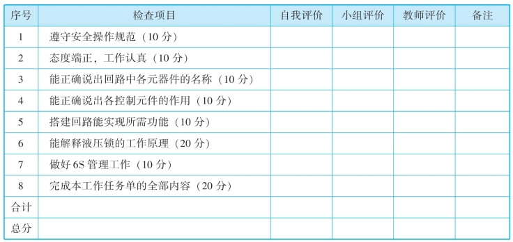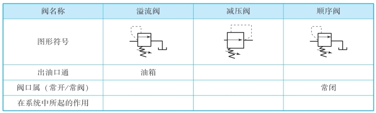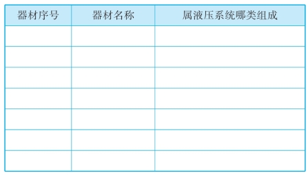 (1)回路信息分析:小组讨论,列出液压回路中所用的器材名称、符号。