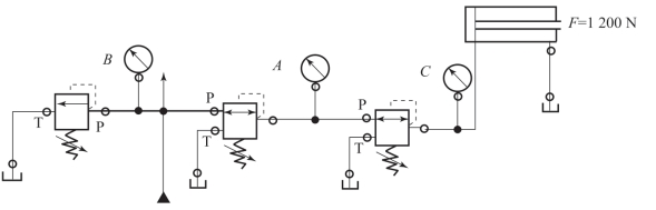 在液压试验台上,连接如题图2-1所示圆钢校直机液压回路,观察压力表和流量计的变化过程,实施任务,做如下实验: