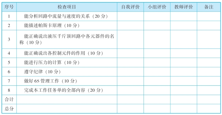 《液压与气压传动技术项目化教程》(第2版)任务工作页