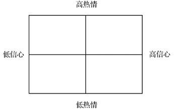 根据你的主观能动性和行动力,在图5-2对应的方格中填入在工作和日常生活中的活动,一个方格代表着我们对某一项事物的热情度和自信心。态度决定热情,行动决定信心。通过该图可以发现,你对哪些活动采取积极的态度和行动。