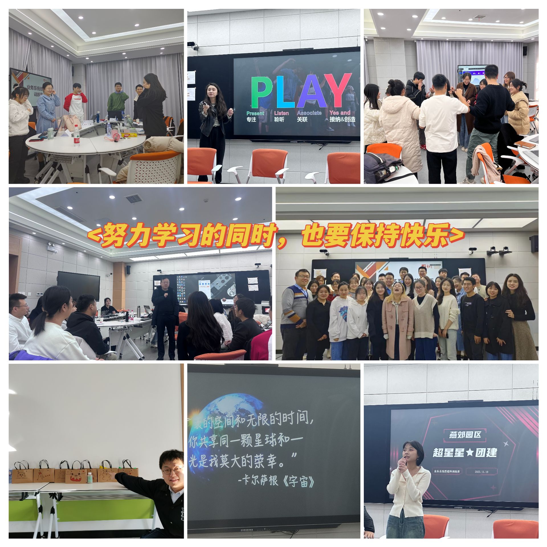 为了员工的成长与发展,公司开设了多样的培训课程和线下培训,有新人必须要学习的课程,也有员工自行报名学习的课程,各位同事可以按需进行学习。