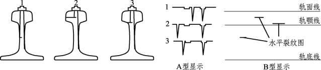 图1-6-5 钢轨水平裂纹与A显、B显回波
