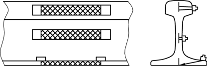 裂纹回波法。采用与纵向裂纹位置判断相同的方法,轨头和轨腰用0°探头,轨底用70°探头(见图1-6-16)。在确定裂纹位置的同时,探头分别向裂纹两边移动,直至裂纹波刚消失,在探头中心对应的钢轨上做好标记,则两个标记的距离为纵向裂纹长度。此法测出值与实际长度也会有误差,其主要原因是裂纹两端的形状和探测面的影响。