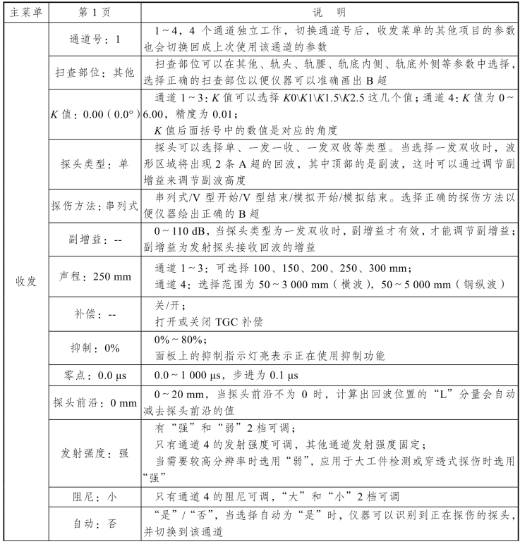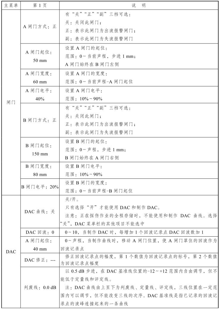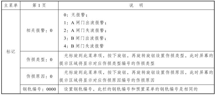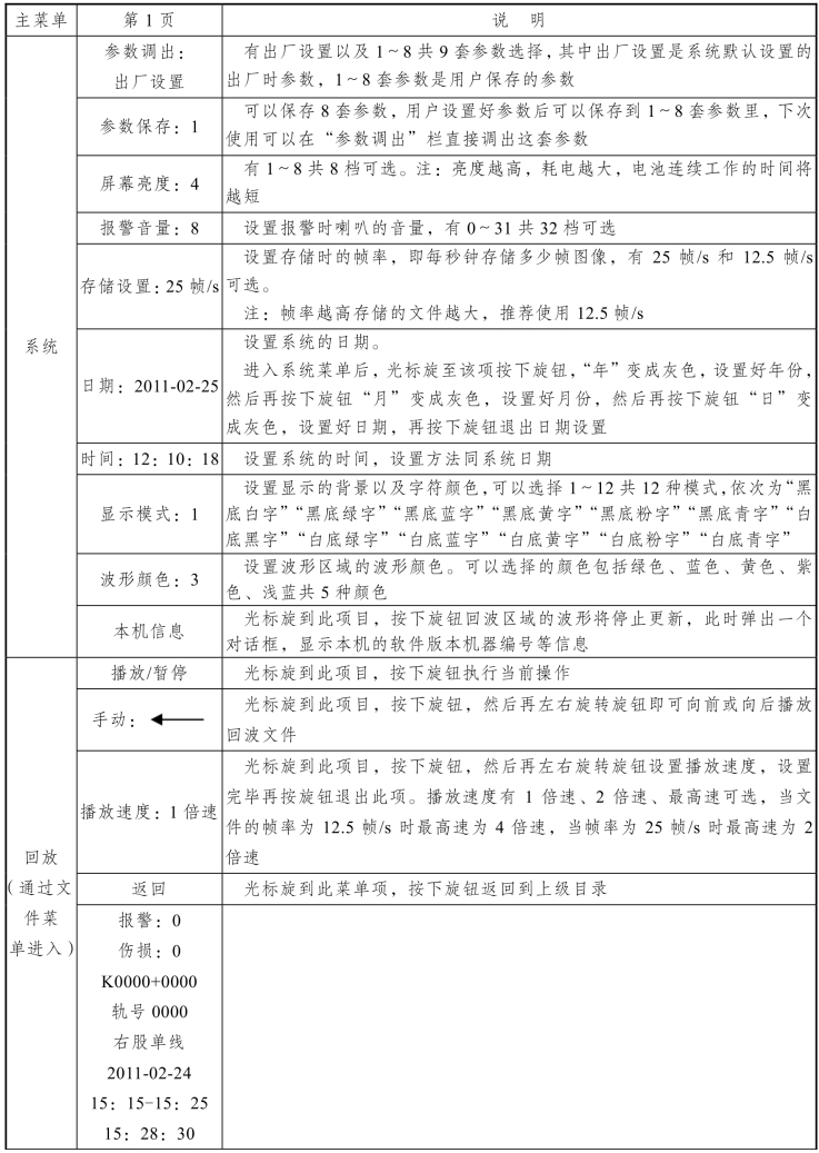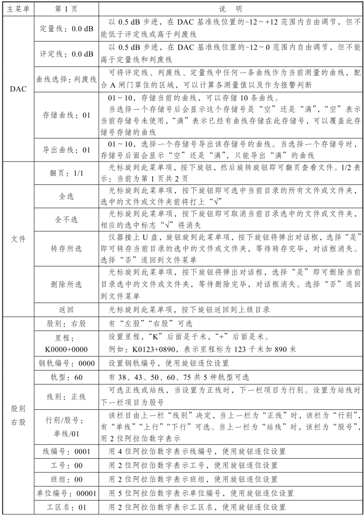 表2-0-1 SDW-900数字钢轨焊缝探伤仪菜单目录