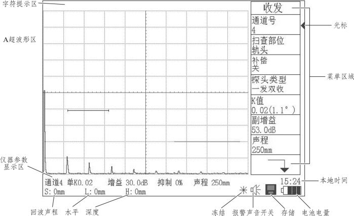 图2-0-4 SDW-900数字钢轨焊缝探伤仪显示画面