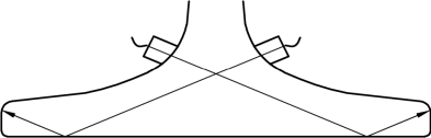 图2-7-5 双圆弧探头轨底三角区扫查示意图(俯视图)