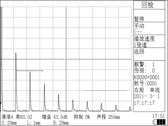 仪器提供伤损标记功能。在探伤的储存过程中,如果出现了报警,探伤作业人员如果判断此报警为伤损,可按