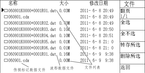 第三级目录下即为回波文件和伤损信息文件,回波文件是以.dat为后缀的数据文件,伤损信息文件以.cdx为后缀。