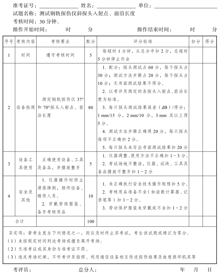 钢轨探伤工初级工操作技能考核评分记录表(3)