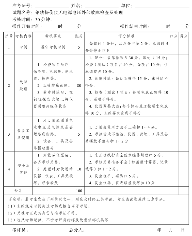 钢轨探伤工高级工操作技能考核评分记录表(15)