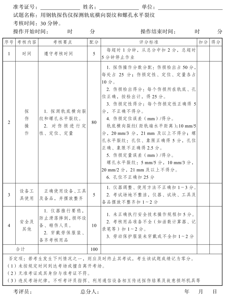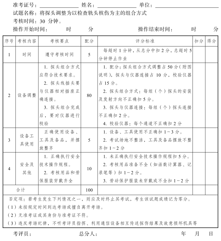 钢轨探伤工高级工操作技能考核评分记录表(11)