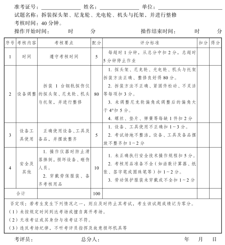 钢轨探伤工高级工操作技能考核评分记录表(1)