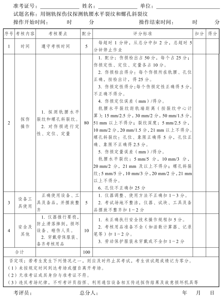 钢轨探伤工高级工操作技能考核评分记录表(5)