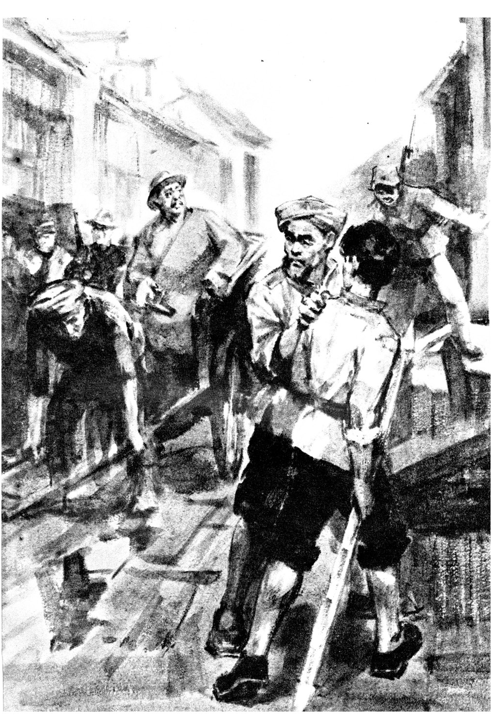 我见这一帮家伙蛮不讲理,心里有气,便把柴挑起来要走。一个遭殃军跑过来抓住我,照我腿上踢了一脚:“你小子往哪里挑?放下!”我把柴担一撂,气愤地问他:“怎么,买柴不给钱,还打人!”接着便和这个家伙吵了起来。
