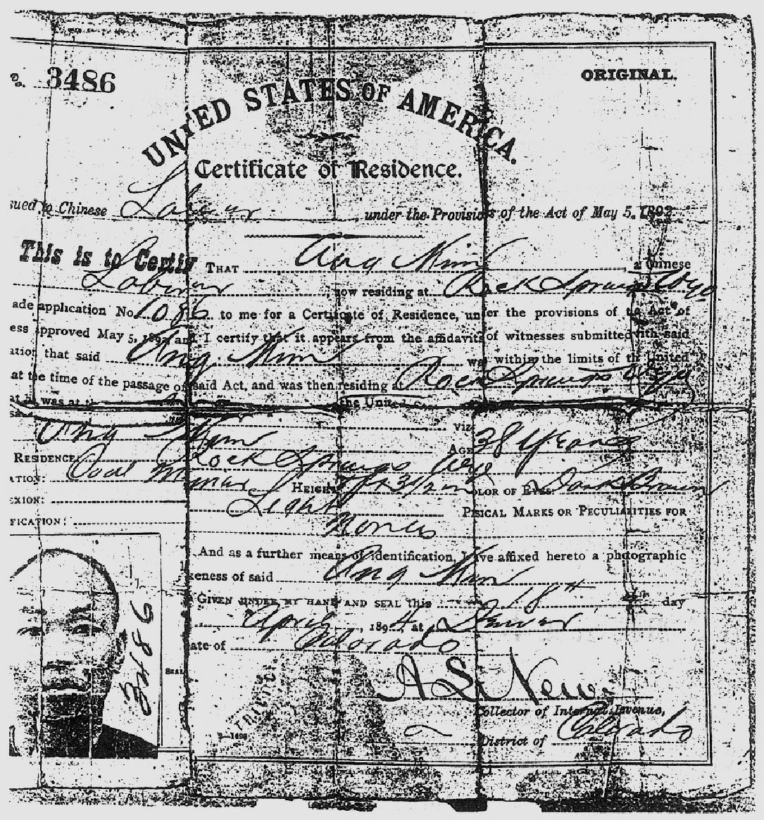1892年 《吉尔里法》通过后发放的华人劳工证