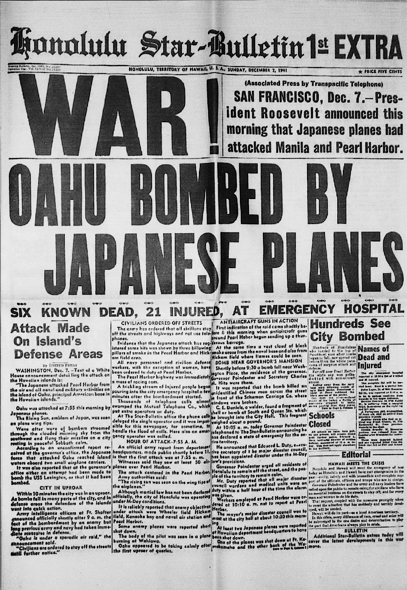 《火奴鲁鲁星报》关于珍珠港事件的号外