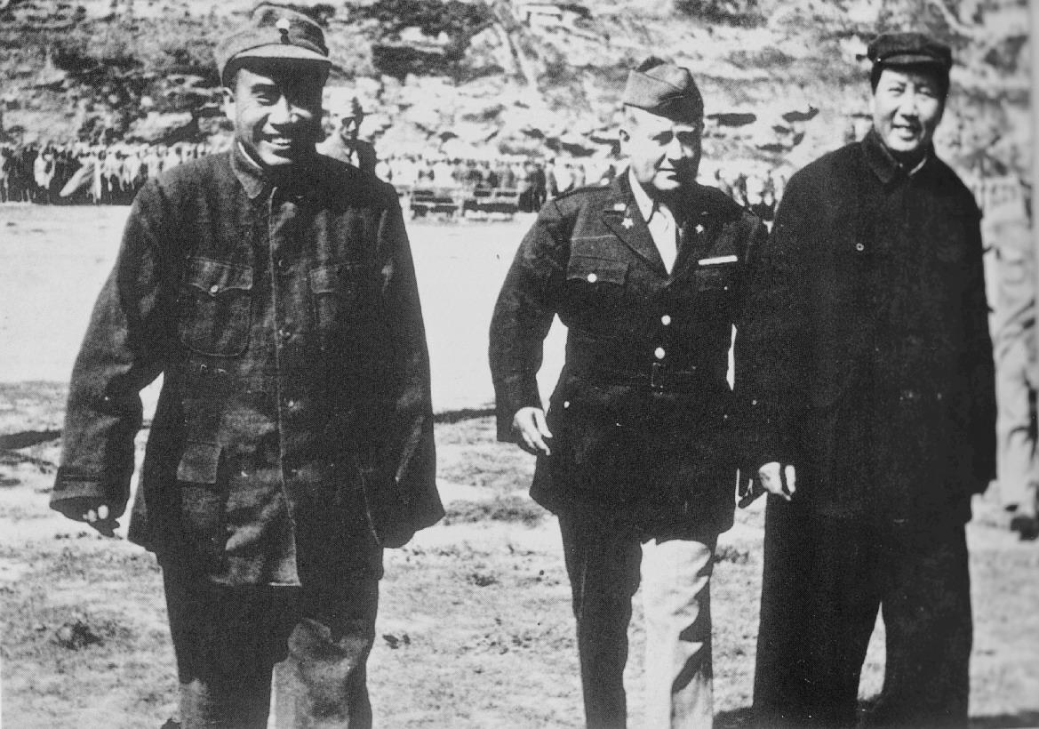 毛泽东、朱德与美军观察组组长包瑞德合影