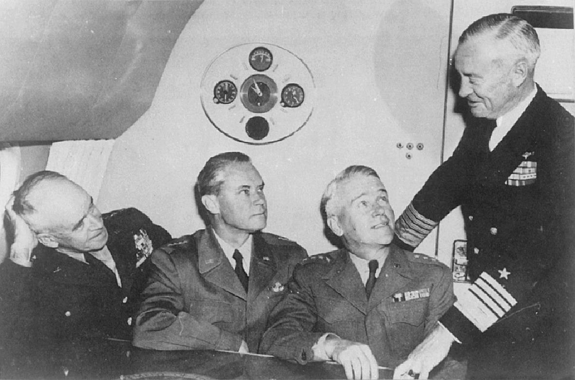 朝鲜战争中的美国参谋长联席会议主席布莱德雷、空军参谋长范登堡、陆军参谋长柯林斯、海军作战部长谢尔曼(从左至右)