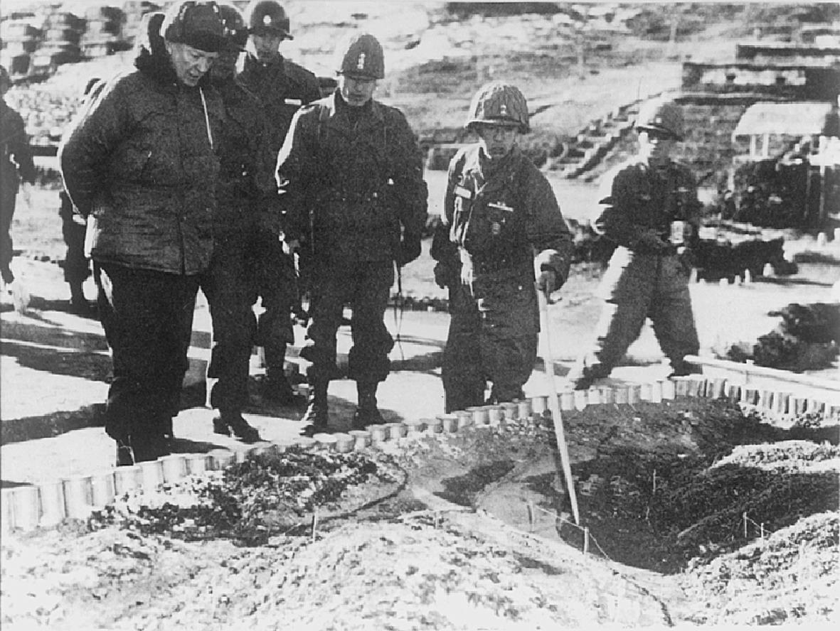 1952年12月,当选总统艾森豪威尔(左一)在朝鲜视察