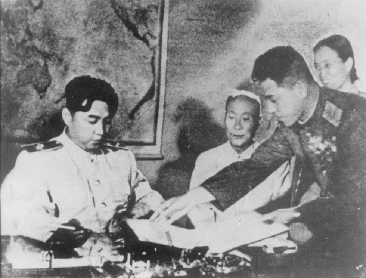 1953年7月27日,中国人民志愿军司令员彭德怀在《朝鲜停战协定》上签字