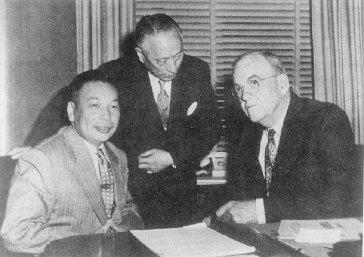 1953年,美国国务卿杜勒斯会见蒋经国和顾维钧