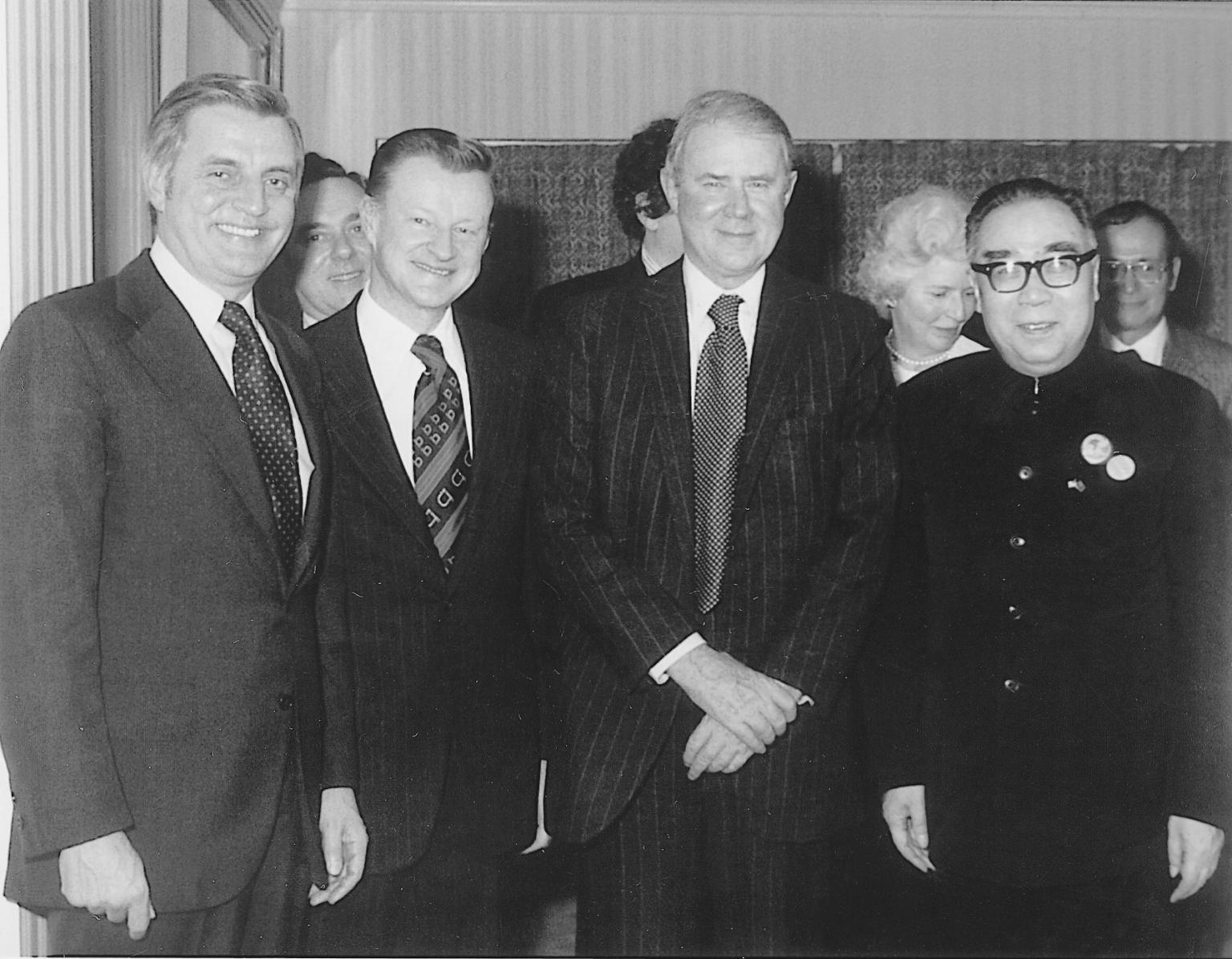 柴泽民大使与万斯国务卿、布热津斯基国家安全事务助理、蒙代尔副总统(右起)