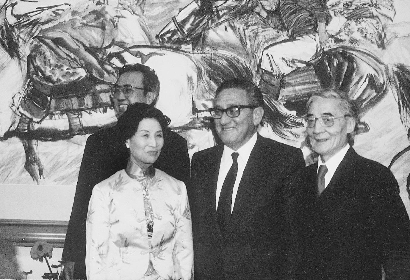 章文晋(右)大使夫妇与美前国务卿基辛格(右二)合影