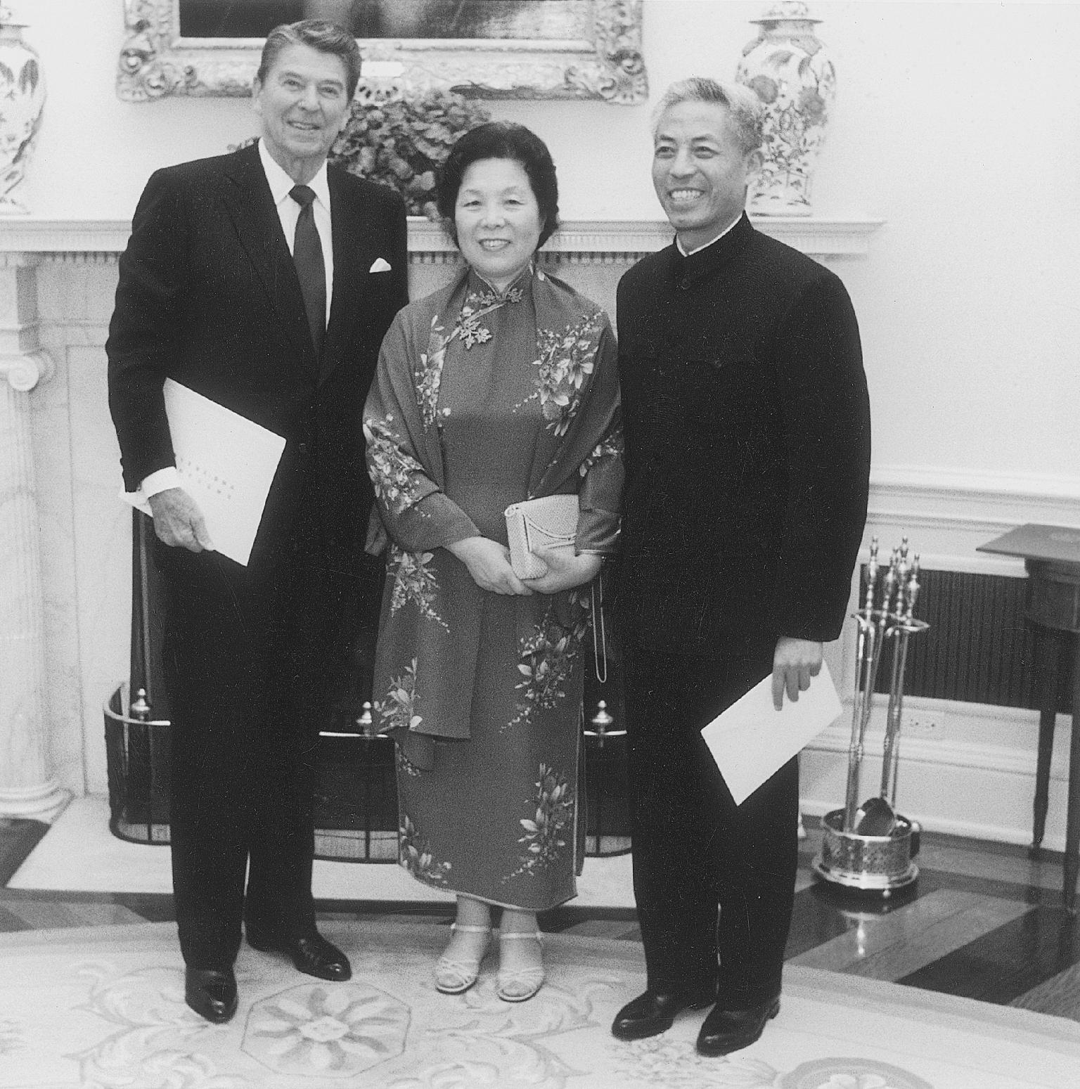 1985年5月22日,韩叙大使递交国书后与里根总统合影。中为韩大使夫人葛绮云