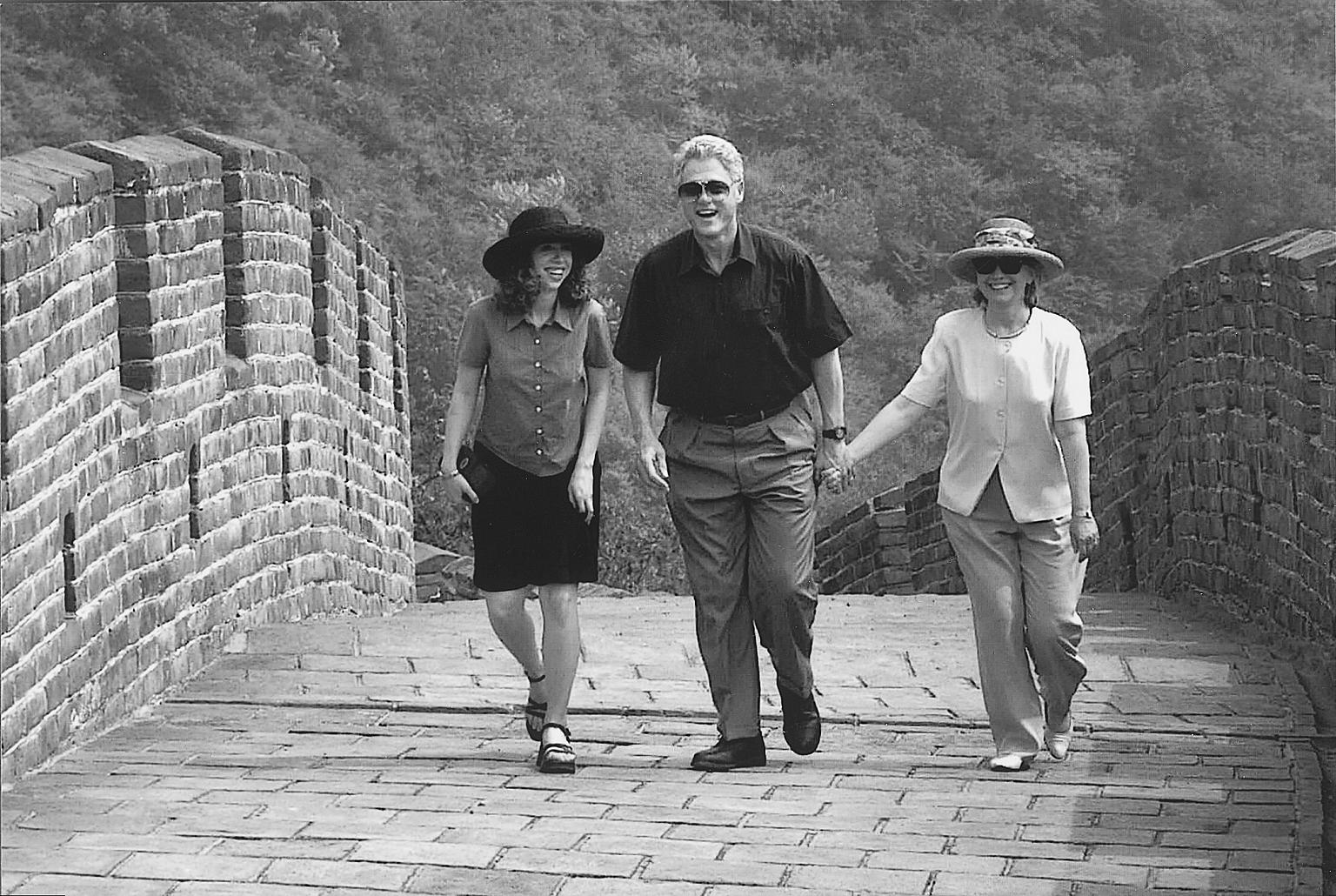 1998年6月,克林顿总统及夫人、女儿游览长城