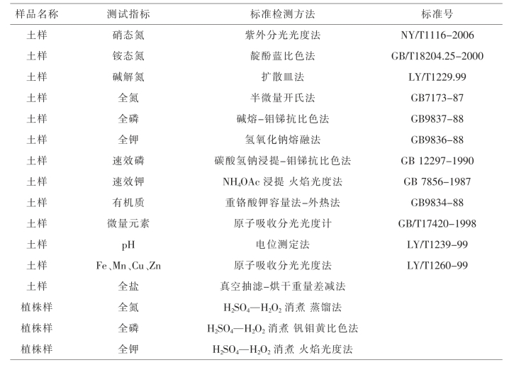 表2-1 瓜州县土壤样品与植株样测试方法汇总