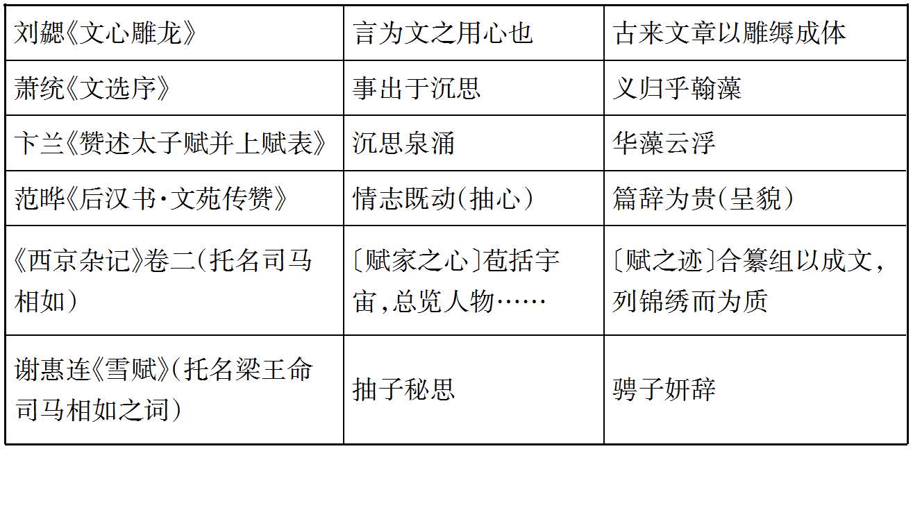 早在二十世纪六十年代,我编的《文心雕龙解析》讲义中,解释《文心雕龙·序志》篇中一段说明此书命名的文字时,就曾列举与刘勰同时的各家之说,说明魏晋南北朝人都是从构思与美文两个方面探讨文学特点的。今将诸文列表如下: