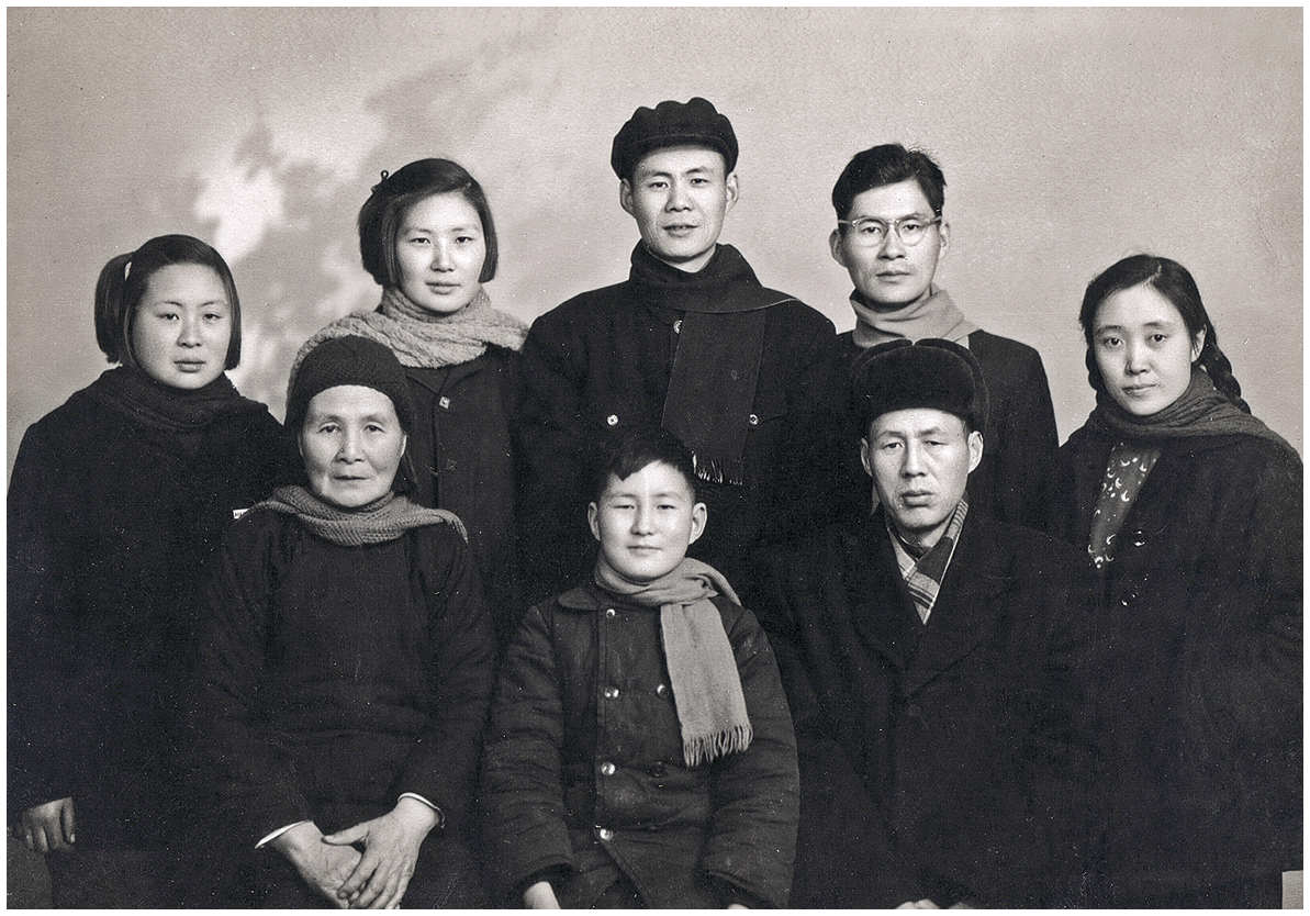 后排左起:小妹妹周吉芳、大妹妹周静芳、大哥周正初、次子周勋初和妻子祁杰