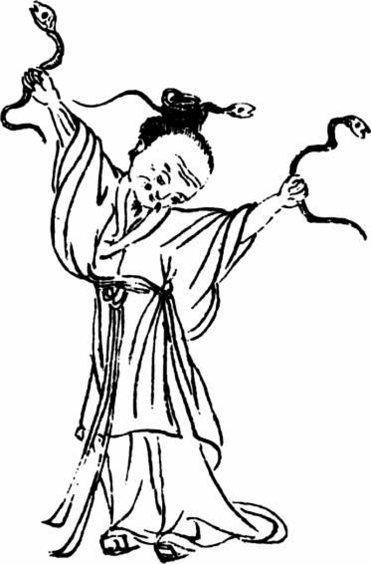 [80]。帝之二女[81]居之,是常游于江渊。澧、沅[82]之风,交潇、湘[83]之渊,是在九江[84]之间,出入必以飘风暴雨。是多怪神,状如人而载蛇,左右手操蛇。多怪鸟。