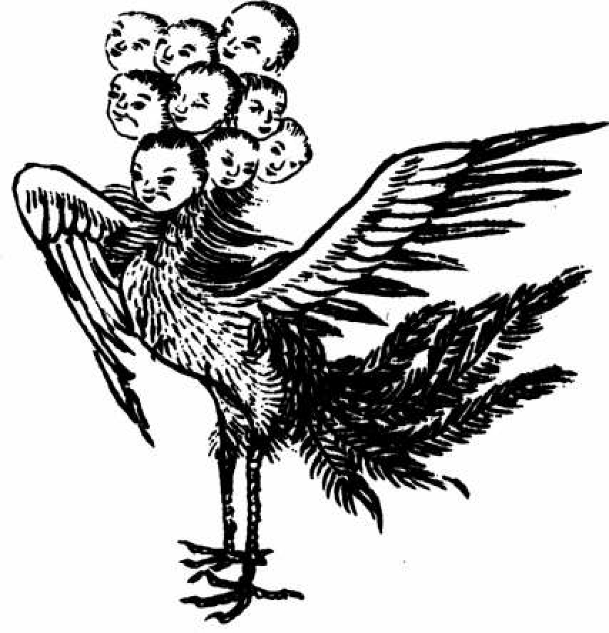 [1],海水北注焉。有神,九首、人面、鸟身,名曰九凤[2]。