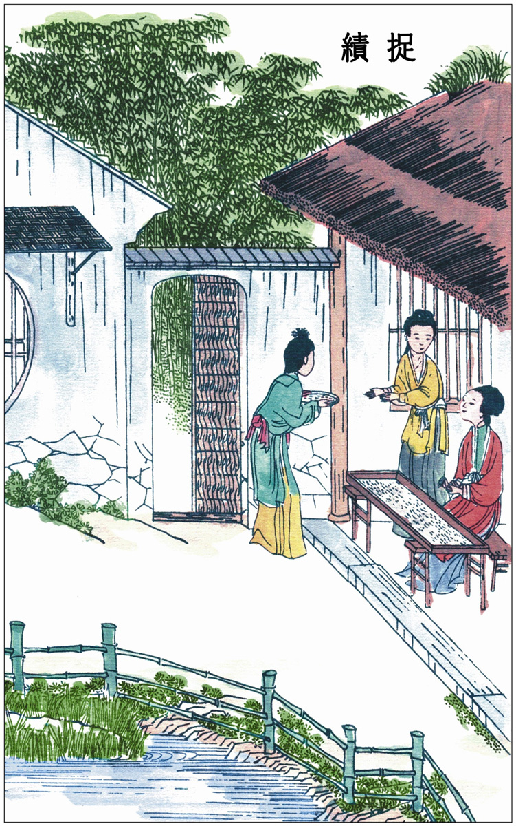 【原文】凡蚕用浴法〔1〕,惟嘉、湖两郡。湖多用天露、石灰,嘉多用盐卤水。每蚕纸一张,盐仓走出卤水二升,掺水于盂内,纸浮其面(石灰仿此)。逢腊月十二即浸浴,至二十四,计十二日,周即漉起〔2〕,用微火烘干。从此珍重箱匣中,半点风湿不受,直待清明抱产〔3〕。其天露浴者,时日相同。以篾盘盛纸,摊开屋上,四隅〔4〕小石镇压。任从霜雪、风雨、雷电,满十二日方收。珍重待时如前法。盖低种经浴,则自死不出,不费叶故,且得丝亦多也。晚种不用浴。