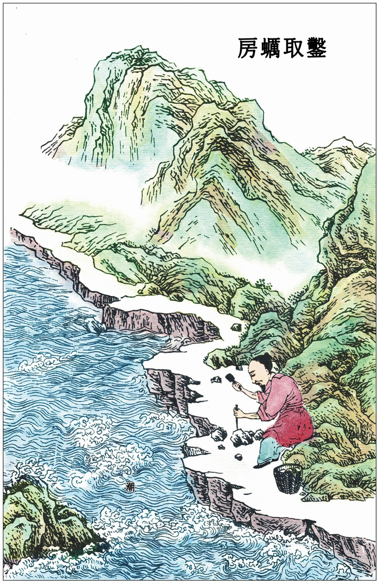 石胆又叫胆矾,产自晋州、隰县等地。胆矾是在洞穴中天然生成的,所以绿色中带有宝石的光泽。将烧红的铁器在胆矾水中淬火,就会变成铜的色泽。