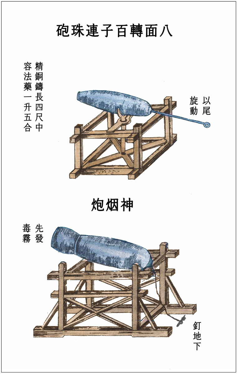 大将军、二将军(比红夷炮小一些,在中国属于巨型武器)。佛郎机(水战时放在船头使用)